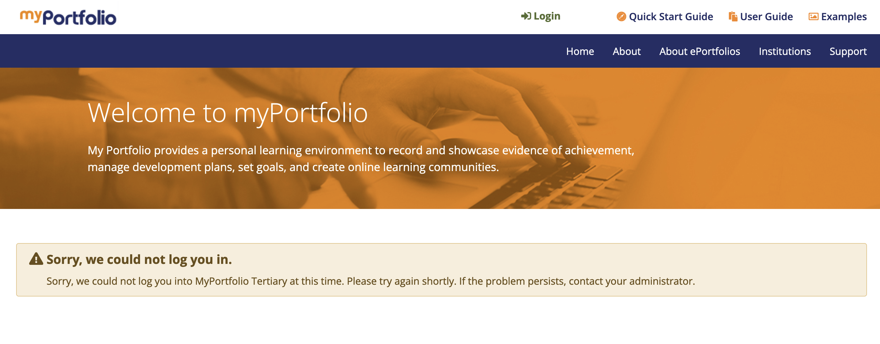 Any time you see a myPortfolio page with these colours, regardless of whether there is an error message, you have found yourself in the wrong place for one of 2 reasons.